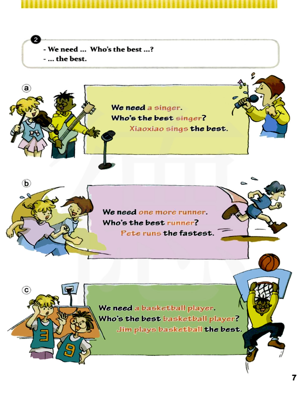 我们还需要一名赛跑运动员。谁是最好的赛跑运动员?皮特跑的最快。