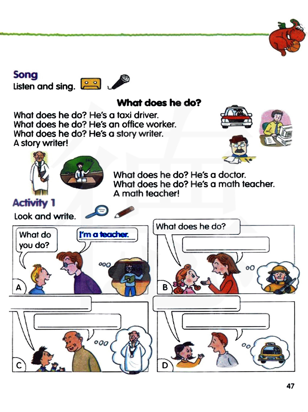 听录音,唱歌曲。
