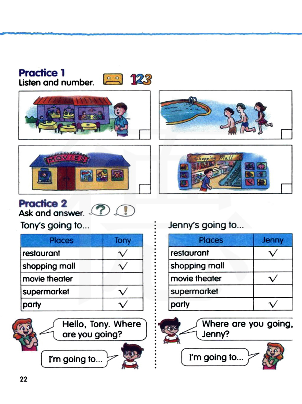 托尼和詹妮都要去哪里?看下面的表格,和你的同学们做做问答练习吧。