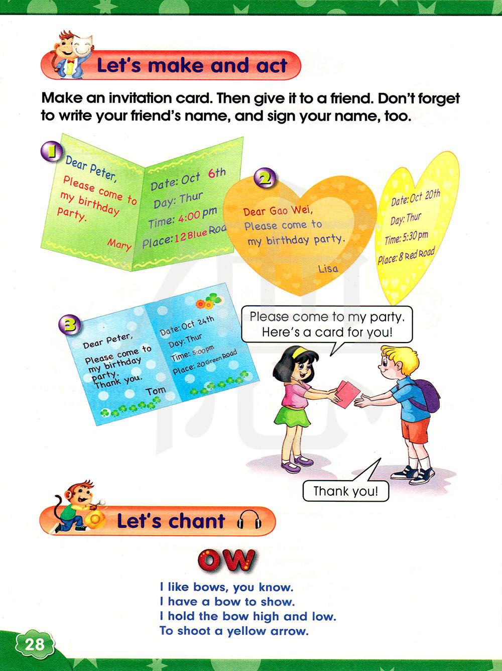 做一张邀请卡。然后把它给你的朋友。不要忘了写上你朋友的名字,并签上你的名字。