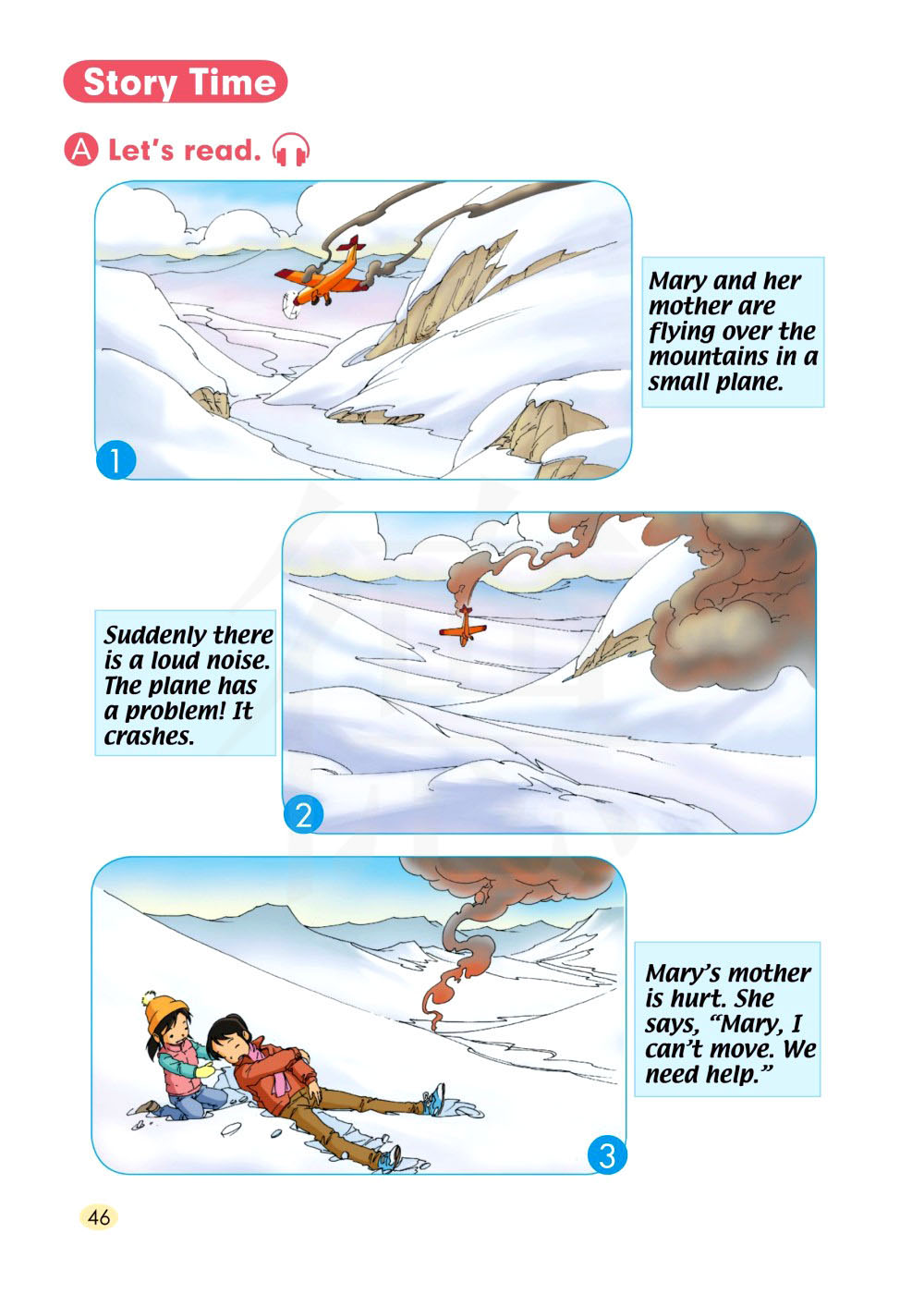 玛丽的妈妈受伤了。她说:“玛丽,我不能动了。我们需要帮助。”