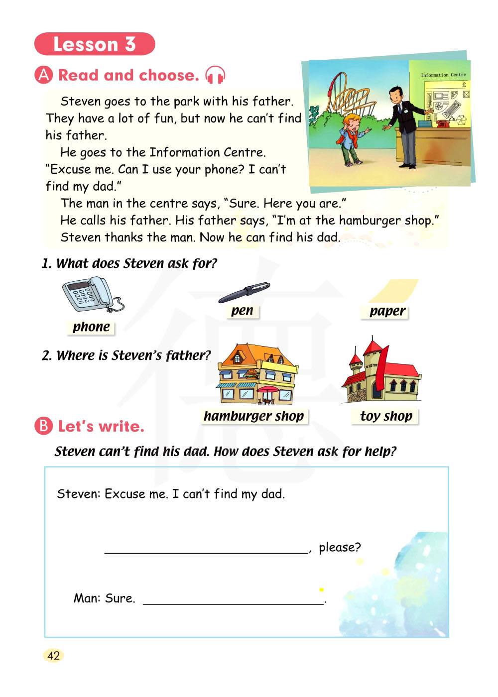 史蒂芬找不到他的爸爸。他是怎么寻求帮助的呢?