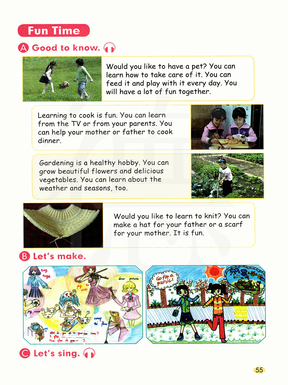 学做饭很有趣。 你可以从电视上学,或者跟你父母学。 你可以帮你妈妈或爸爸做晚饭。