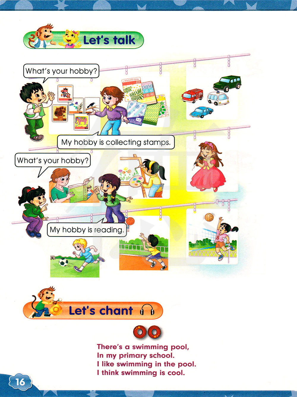 有个游泳池,在我的小学校园里。我喜欢在游泳池里游泳。我认为游泳很酷。