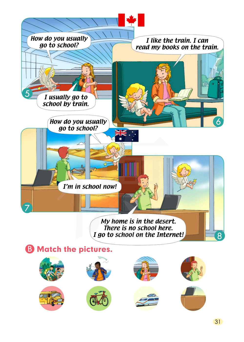 我的家在沙漠里。那里没有学校。我通过网络上学!