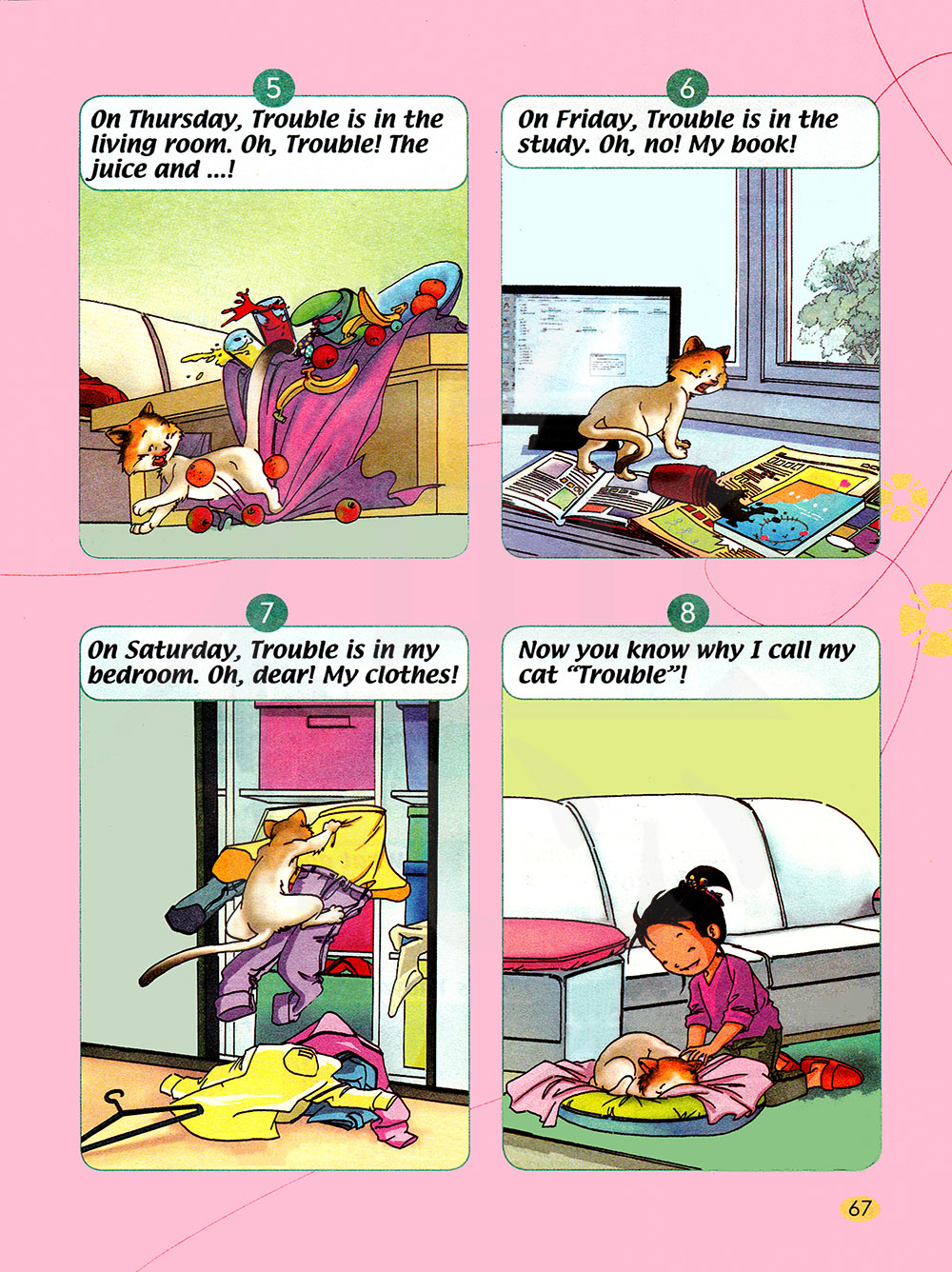 星期四,Trouble在客厅。 哦,Trouble!果汁和……!