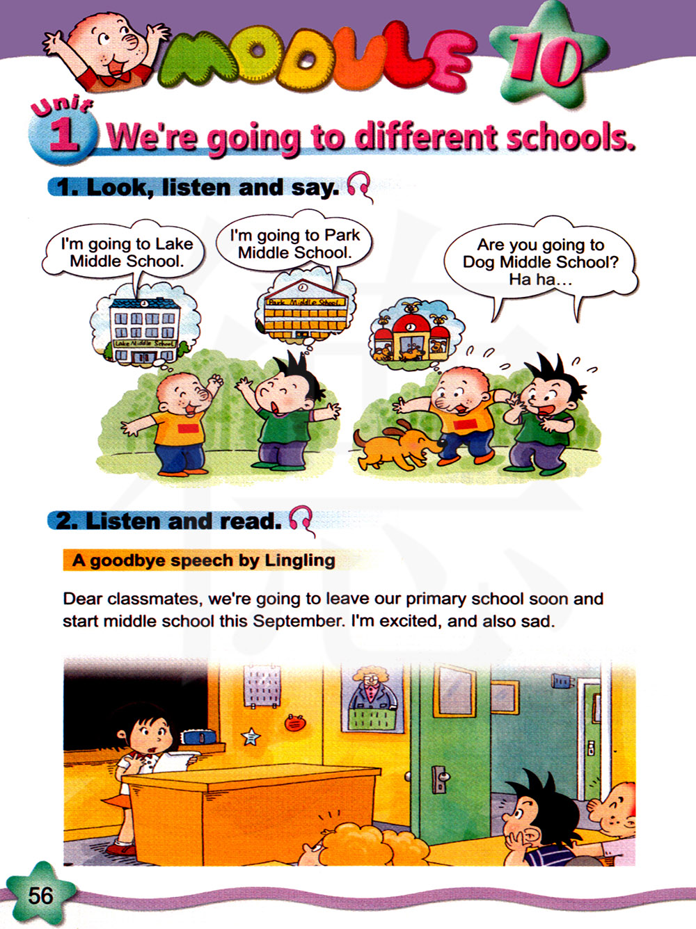 1. 学会单词: middle,middle school, speech, classmate,leave,September,excit