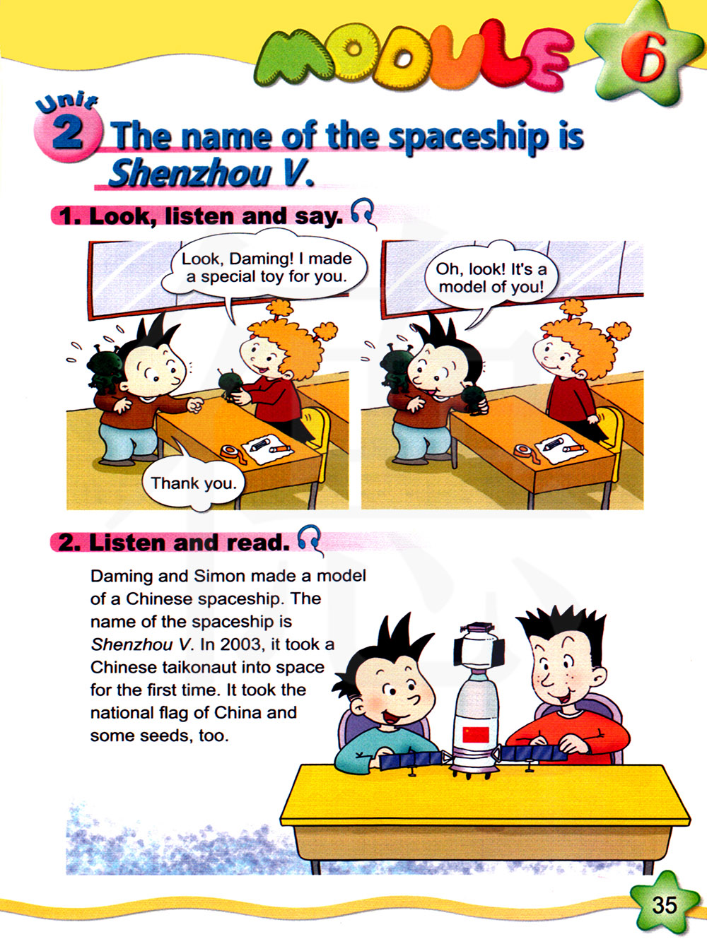 (2)能听懂会说目标语句 :The name of the spaceship is Shenzhou V.