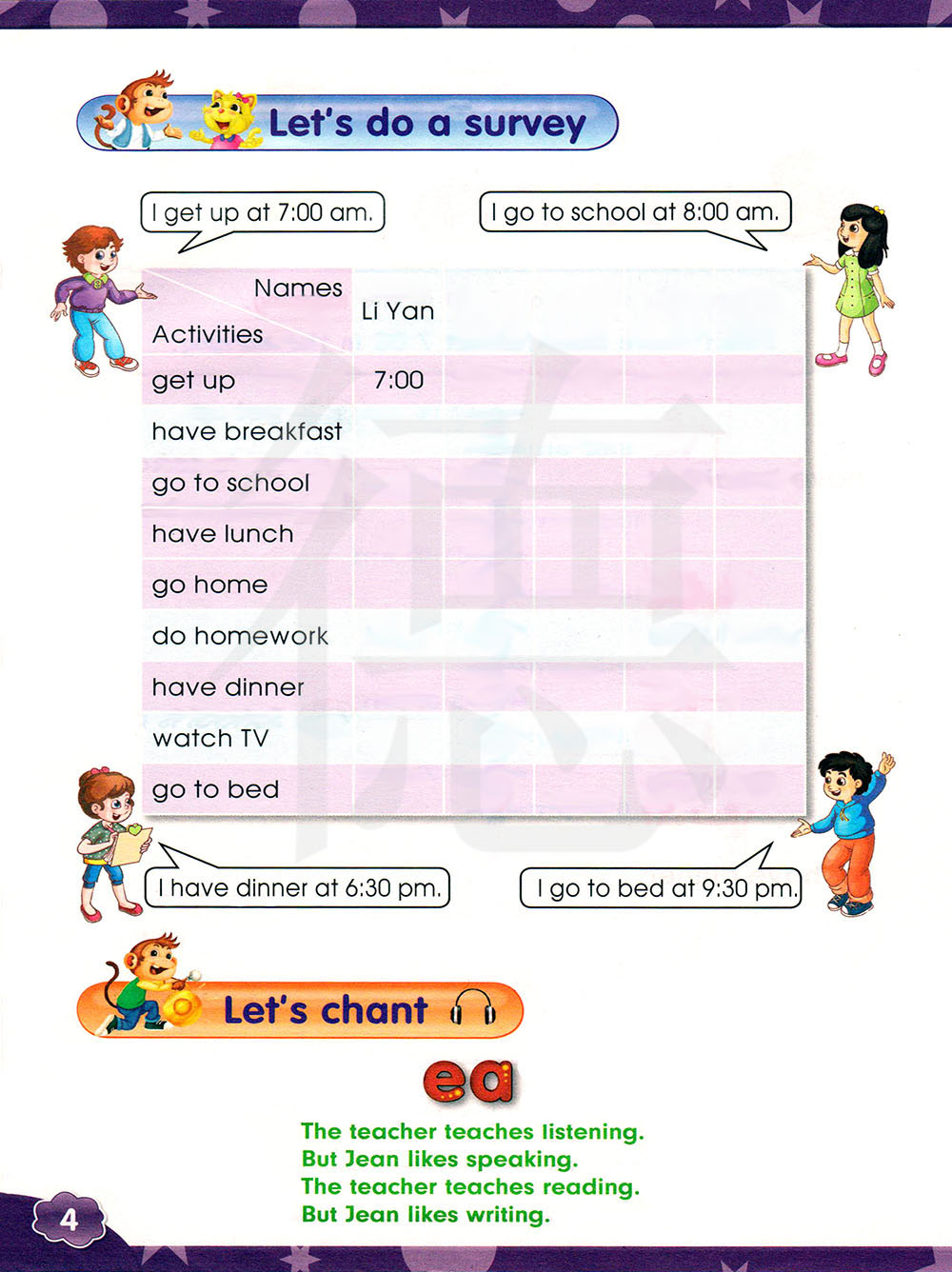 老师教听力。但是琼喜欢口语。老师教阅读。但是琼喜欢写作。