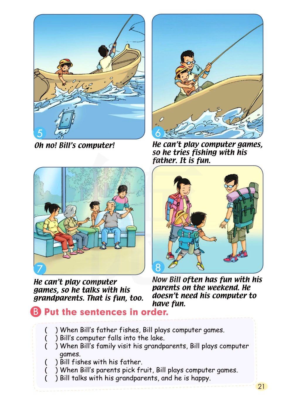 现在比尔和他的父母在周末的时候总是很开心。他不需要用他的电脑来寻开心了。