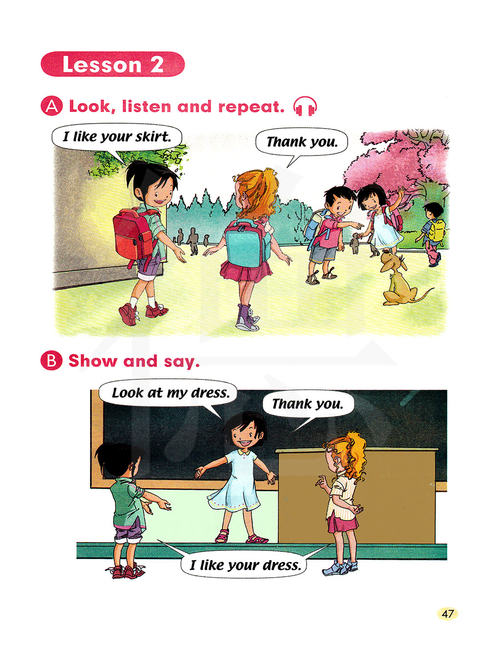 看一看,听一听并复述。 我喜欢你的裙子。 谢谢。 这是我穿上我的衬衫的方式, 穿上我的衬衫, 穿上我的衬衫。 这是我穿上我的衬衫的方式 然后我去上学。 这是我脱下我的短裤的方式, 脱下我的短裤, 脱下我的短裤, 这是我脱下我的短裤的方式, 然后我去睡觉。