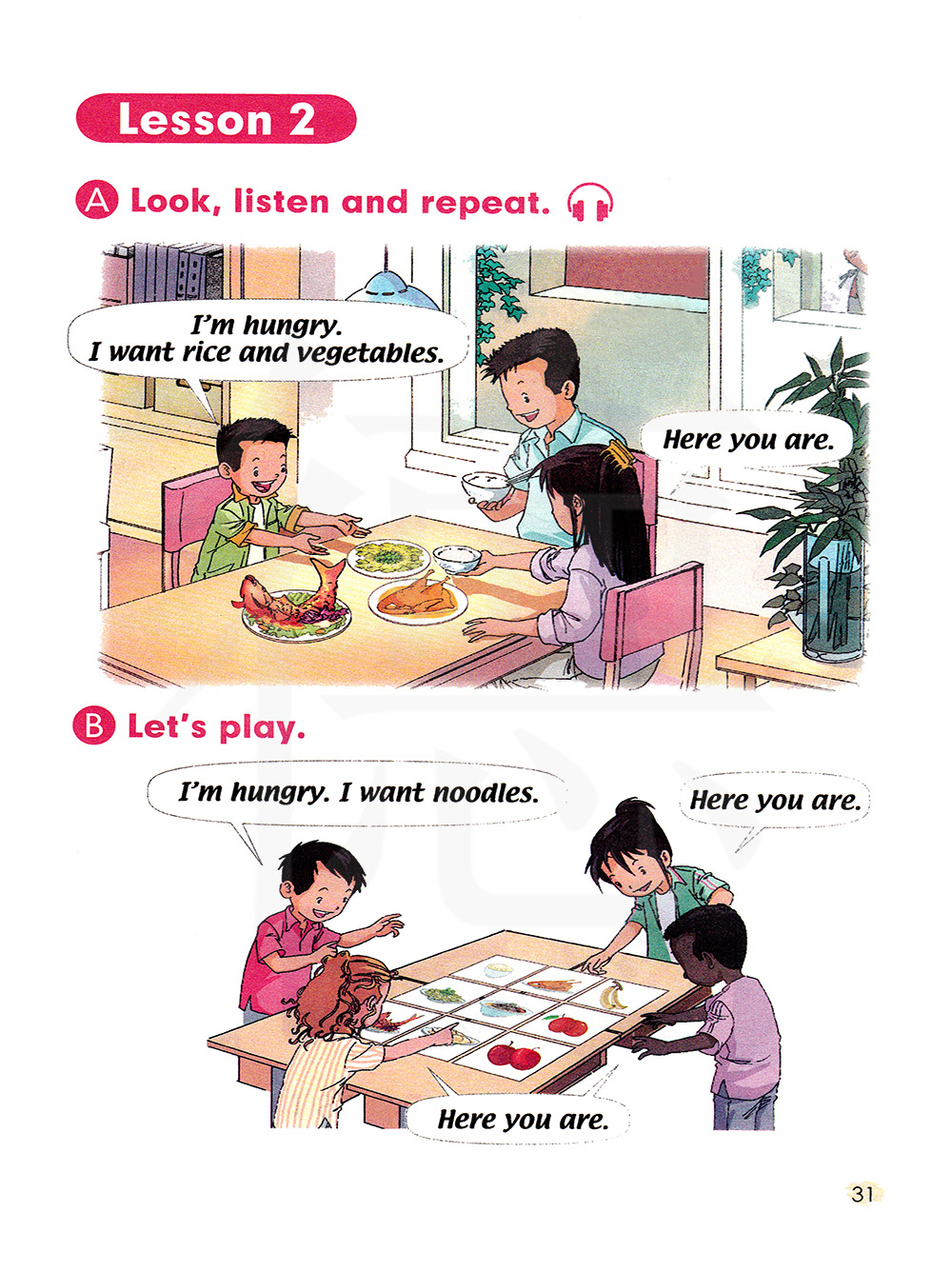 看一看,听一听并复述。 我饿了。 我想要米饭和蔬菜。 给你。 做个蛋糕,做个蛋糕, 面包店的男人! 尽可能快的给我们烤个面包 拍拍它,戳戳它, 把它做上记号“B”。 为了婴儿和我把它放在烤箱里, 为了婴儿和我, 为了婴儿和我。 然后婴儿和我将有很多可以吃。