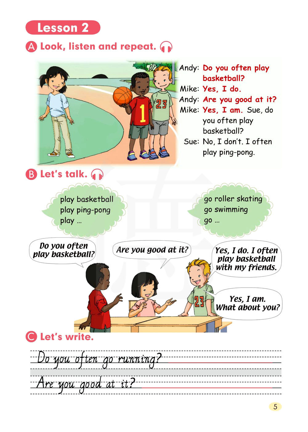 是的,我擅长打篮球。苏,你经常打篮球吗?