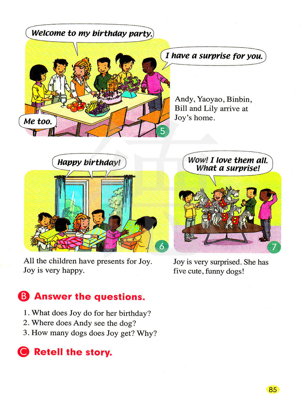 安迪、瑶瑶、彬彬、比尔和莉莉到了乔伊的家。
