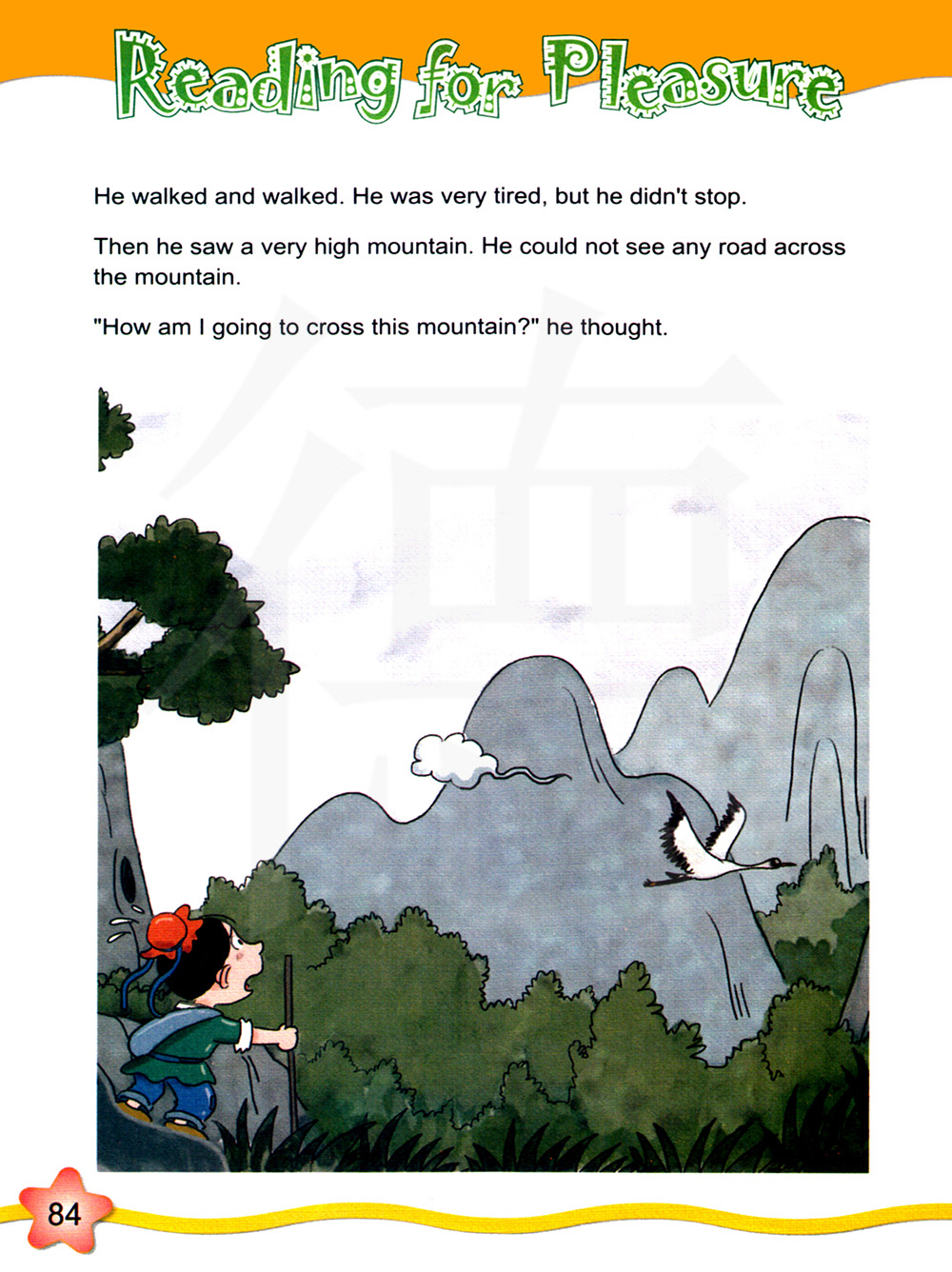 然后他看到了一座很高的山。他不能看到任何能穿过这座山的路。