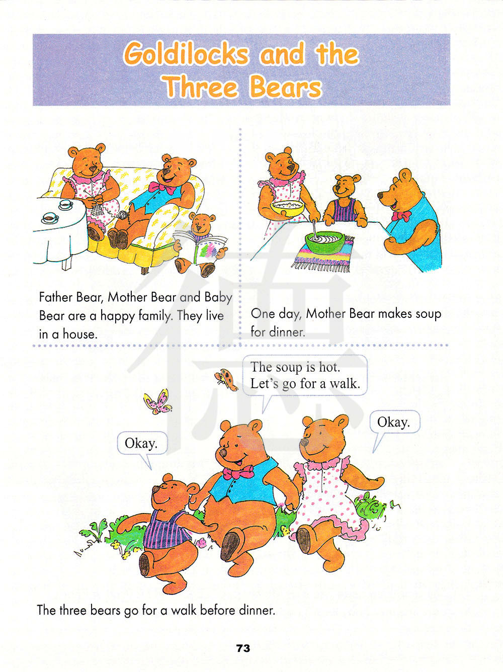 熊爸爸,熊妈妈和熊宝宝是幸福的一家人。他们住在一个房子里。
