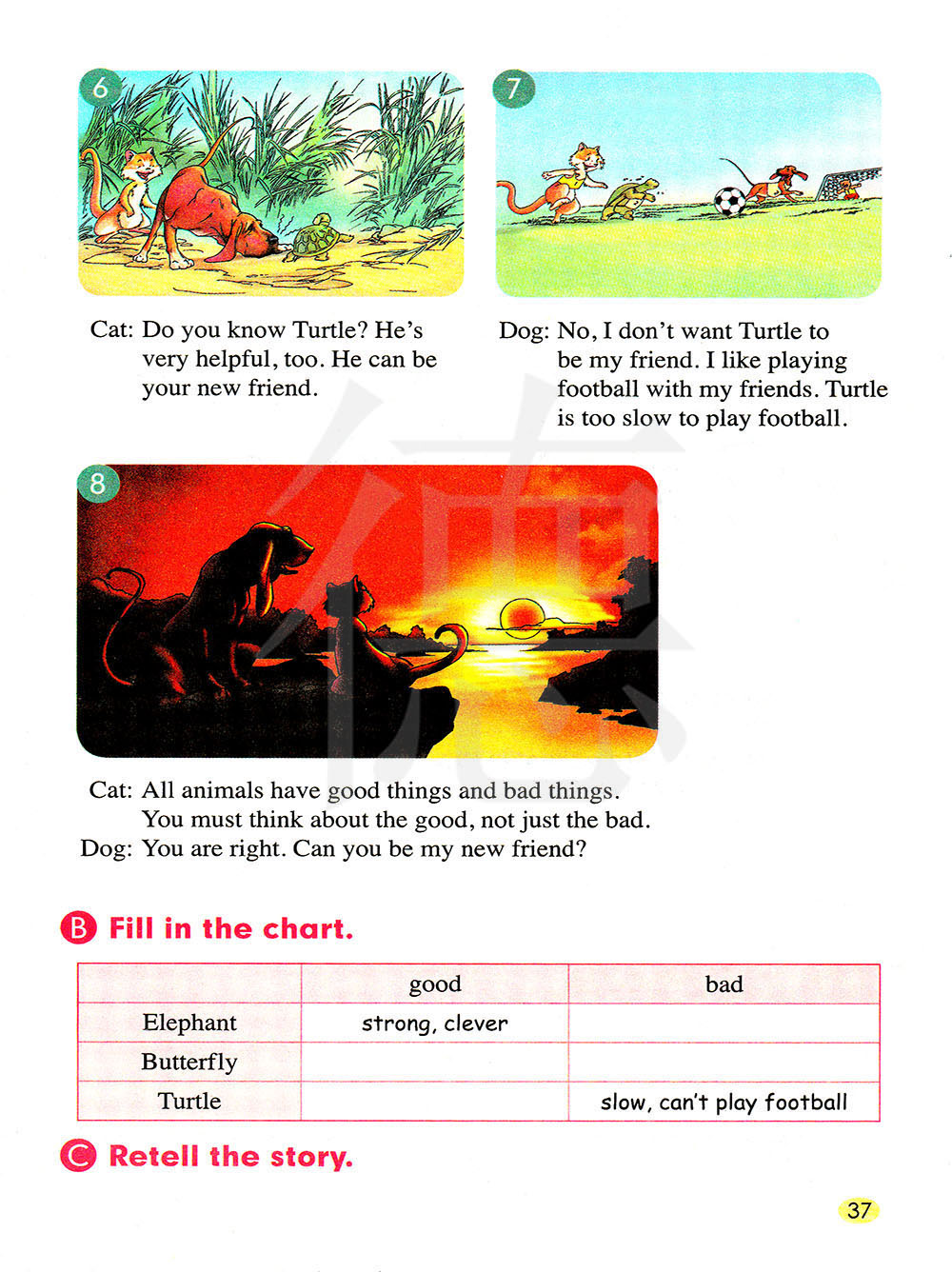 复述故事。