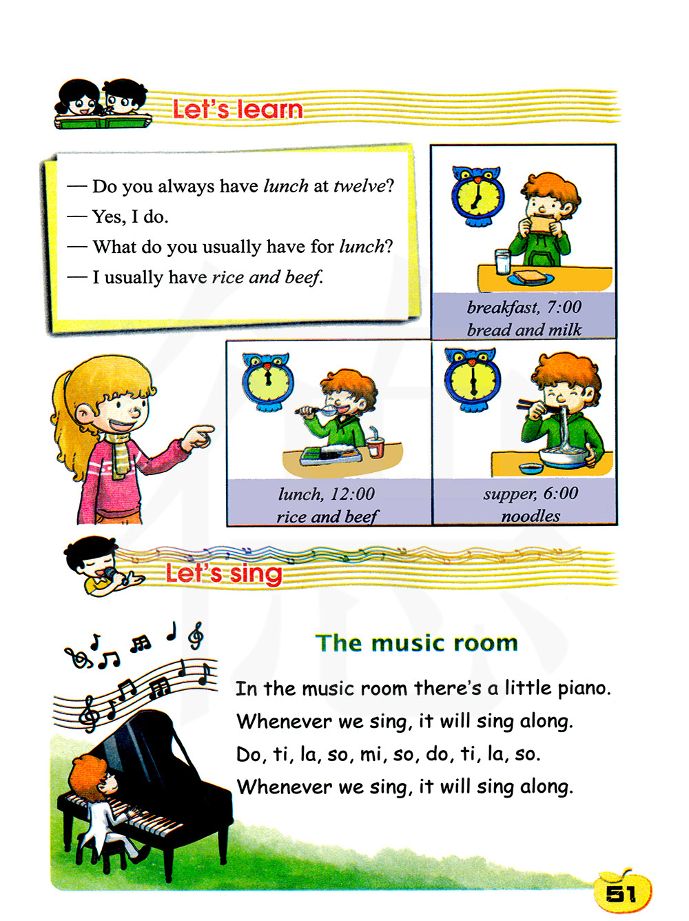 音乐教室 在音乐教室里有一架小钢琴。 无论什么时候我们唱歌,它都会跟我们一起歌唱。 哆,西,拉,梭,哆,西,拉,梭。无论什么时候我们唱歌,它都会跟我们一起歌唱。