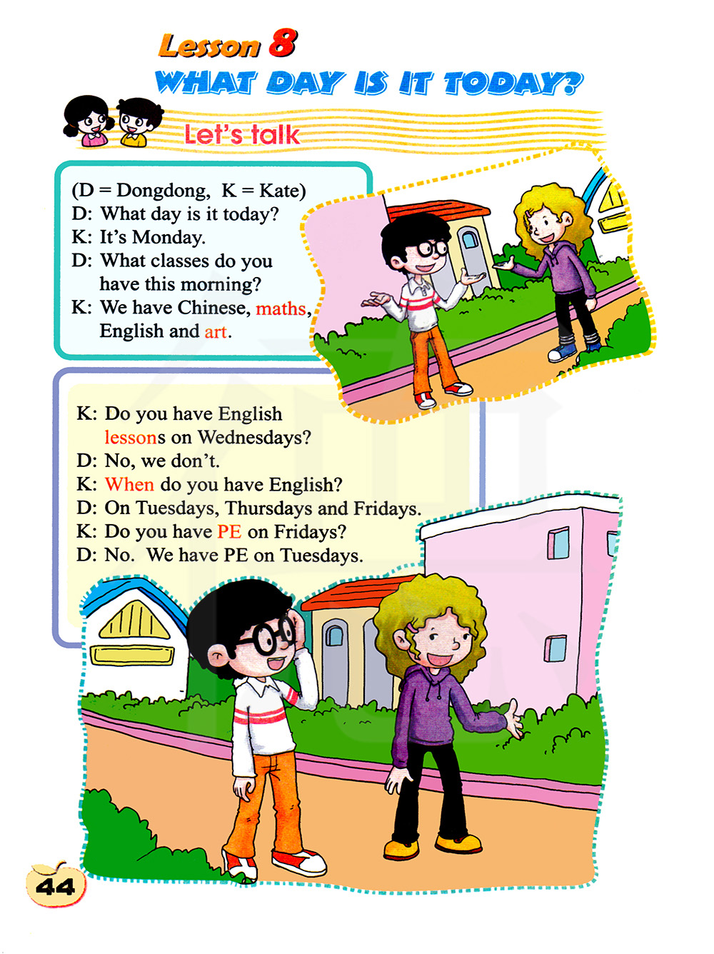 3.When do you have English? 4.We have Chinese and PE.