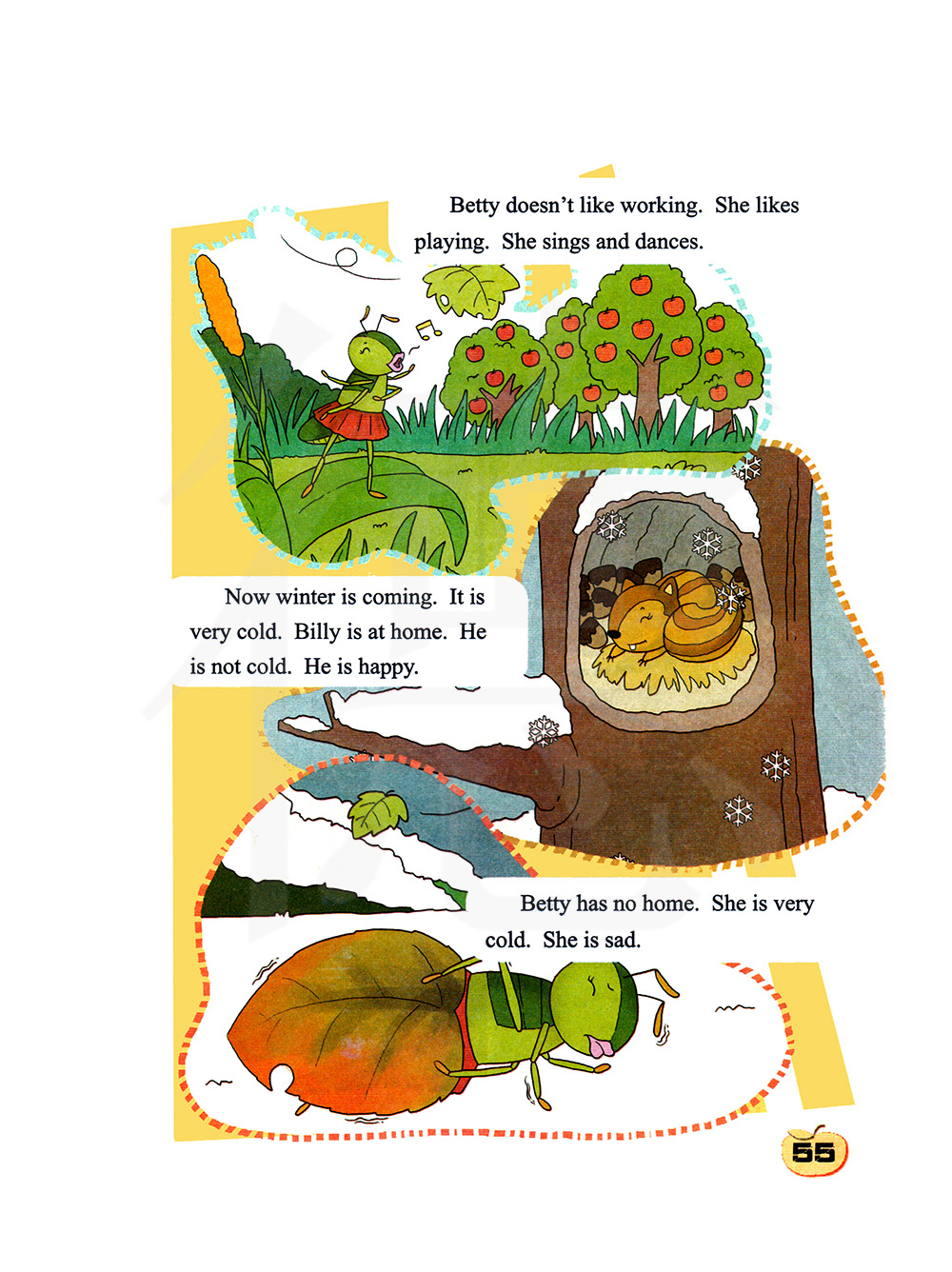 现在冬天来了。天气很冷。比利在家。他不冷。他很高兴。