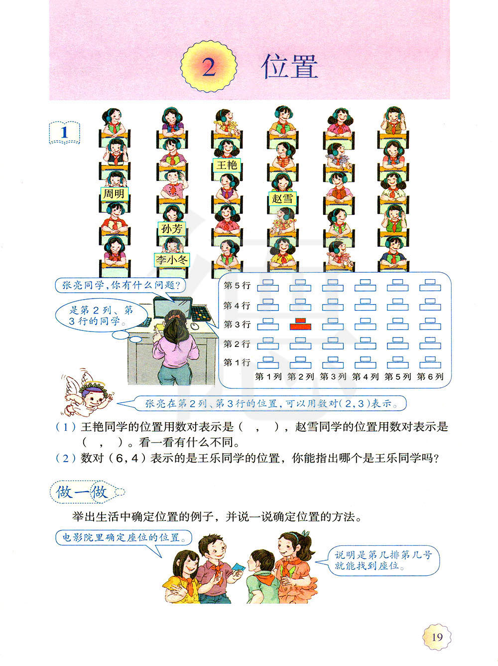 2、数对可以表示物体的位置,也可以确定物体的位置。