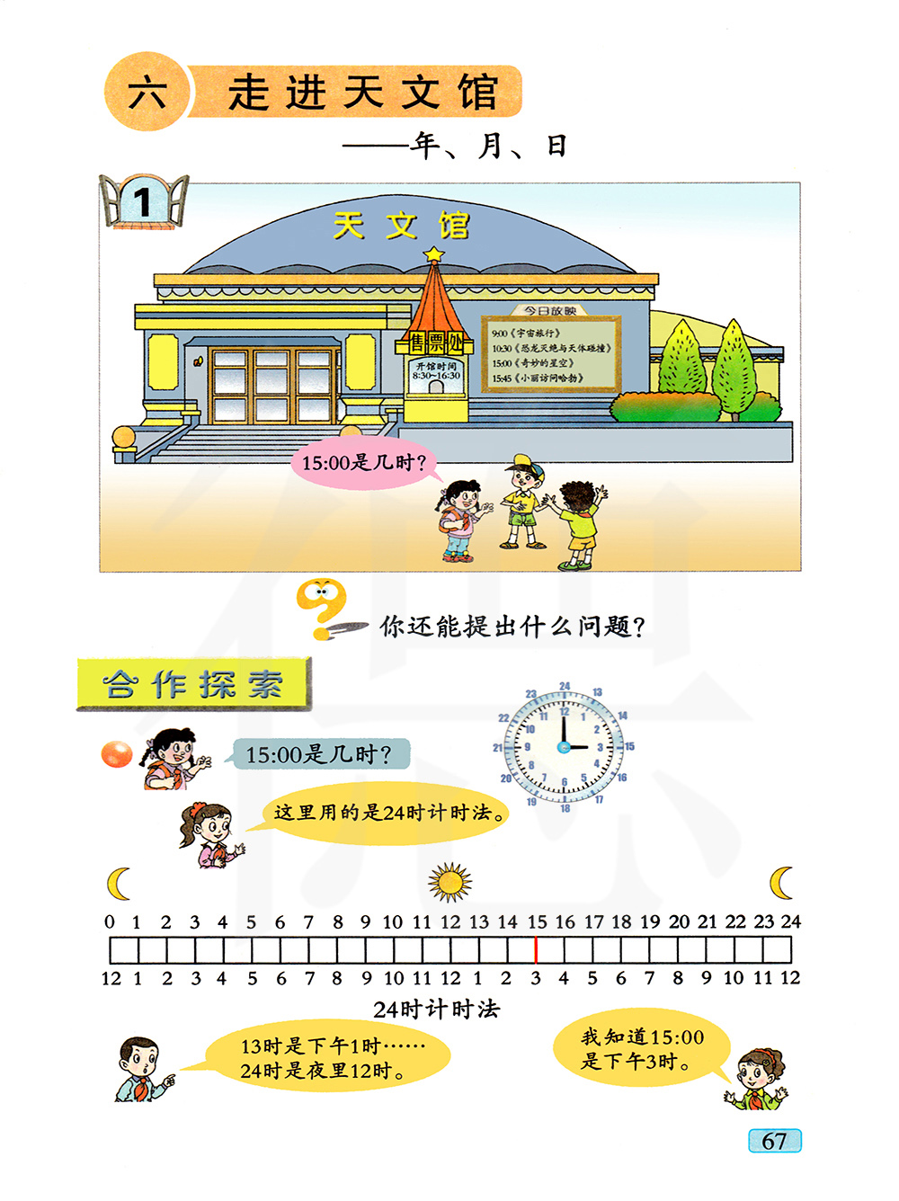 (2)知道24时计时法,会用24时计进法表示时刻;初步理解时间和时刻的意义,学会计算简单的经过时间。