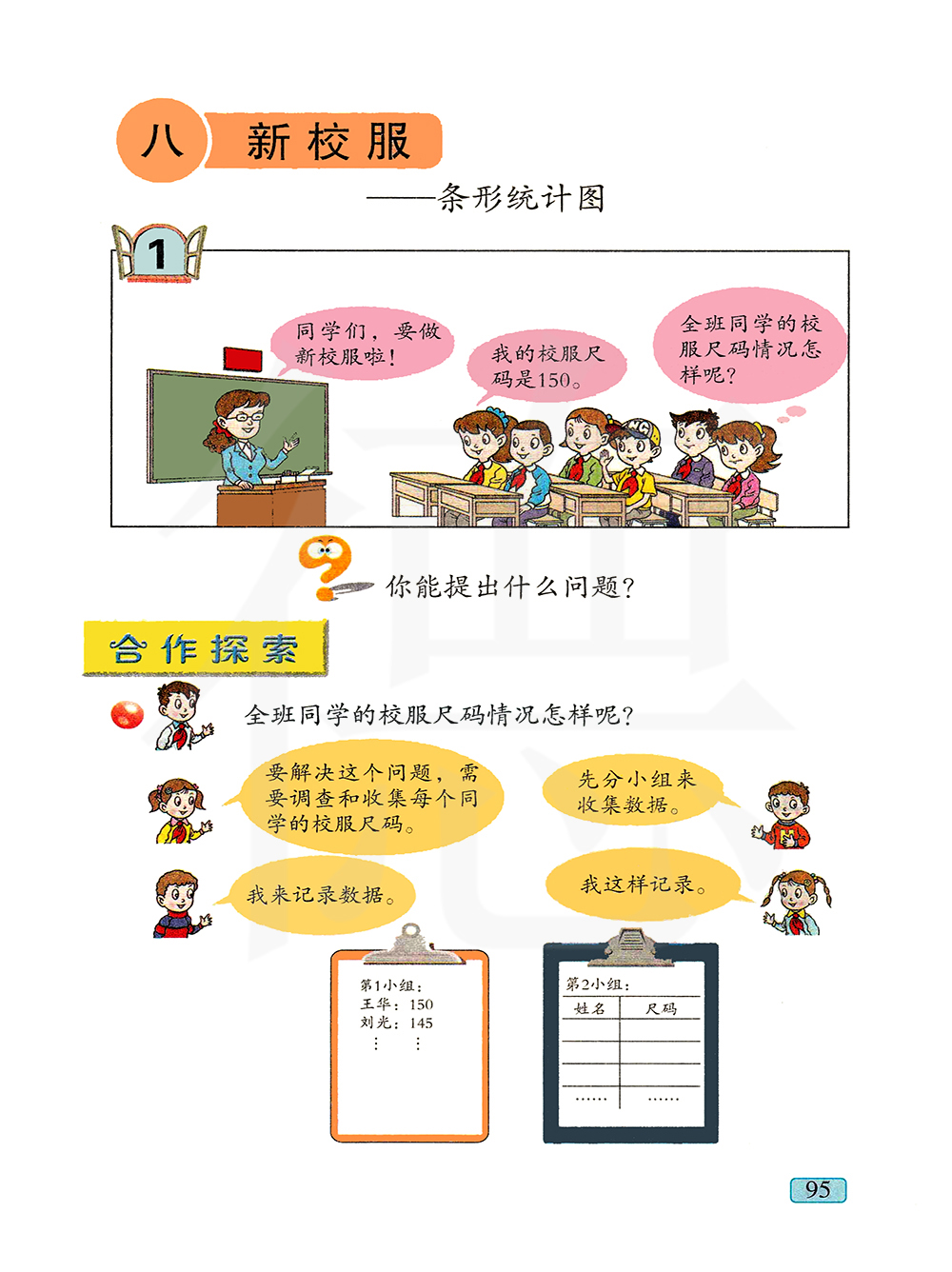统计图是描述数据的重要手段,可以直观地表示数据。《义务教育数学课程标准》(2011版)在“统计与概率”部分做了较大调整, 从第二学段即本册开始学习条形图,将原来分散在一、二年级的条形图内容合起来进行认识。通过学习,使学生认识条形统计图(以1代多),会用条形统计图来描述数据,能根据统计图回答并提出简单的问题,并能进行简单的数据分析。对于条形统计图教学有以下建议: