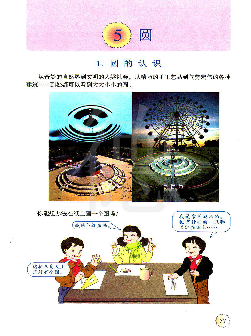(1)圆规两脚间的距离是圆的半径。