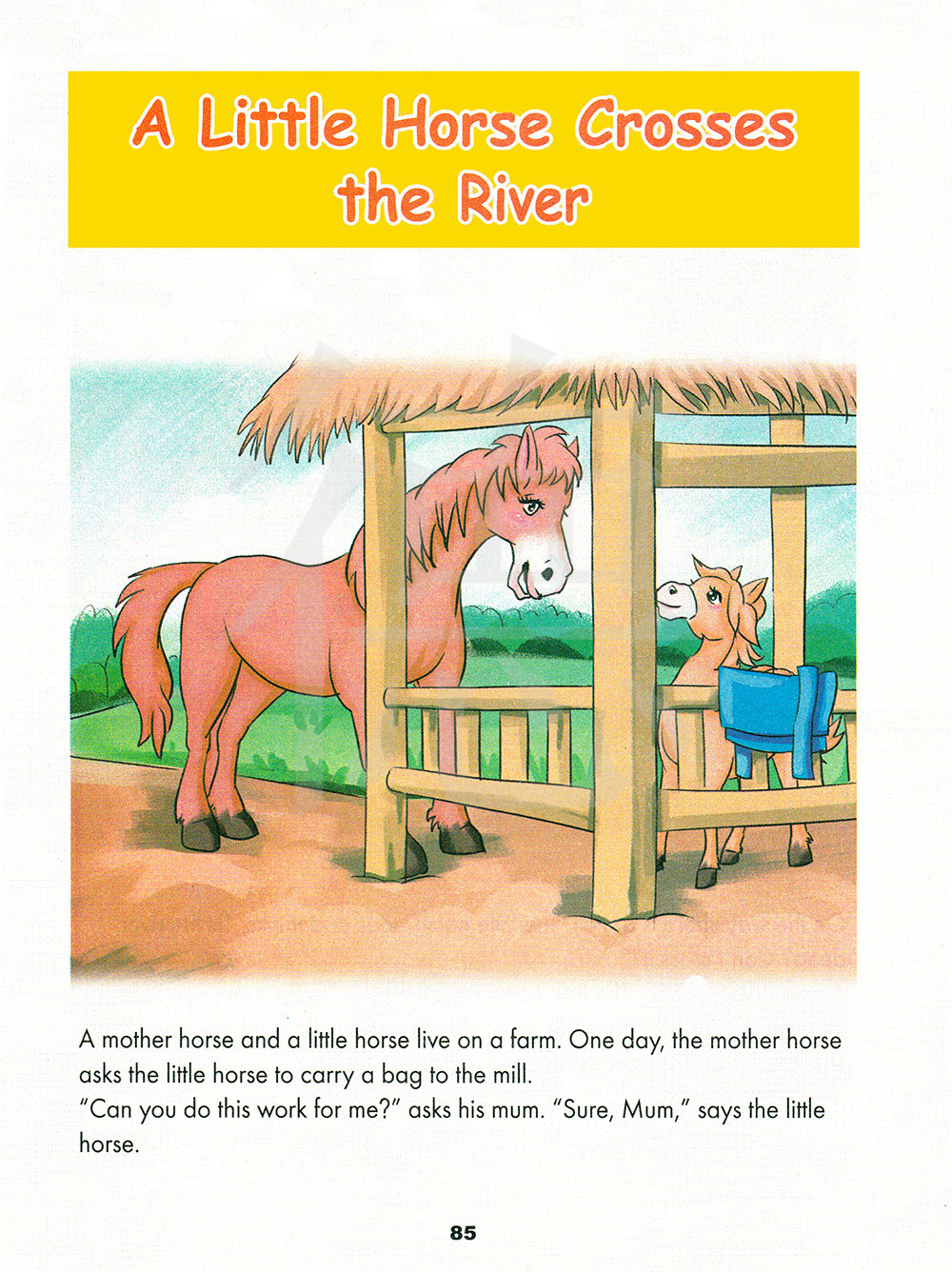 一匹老马和一匹小马住在一个农场里。一天,老马叫小马驮一个袋子去磨坊。