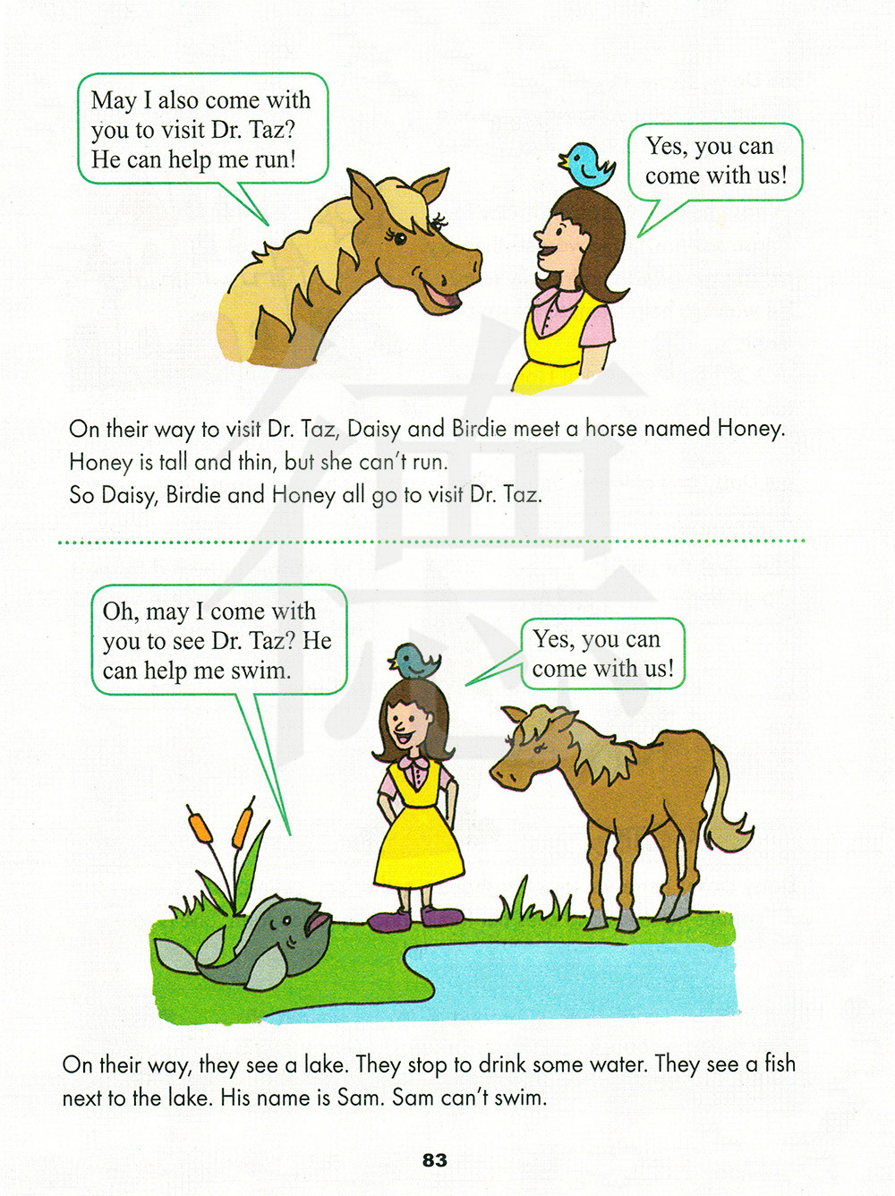 在他们去拜访泰兹博士的路上,黛西和博迪遇到了一匹叫哈尼的马。