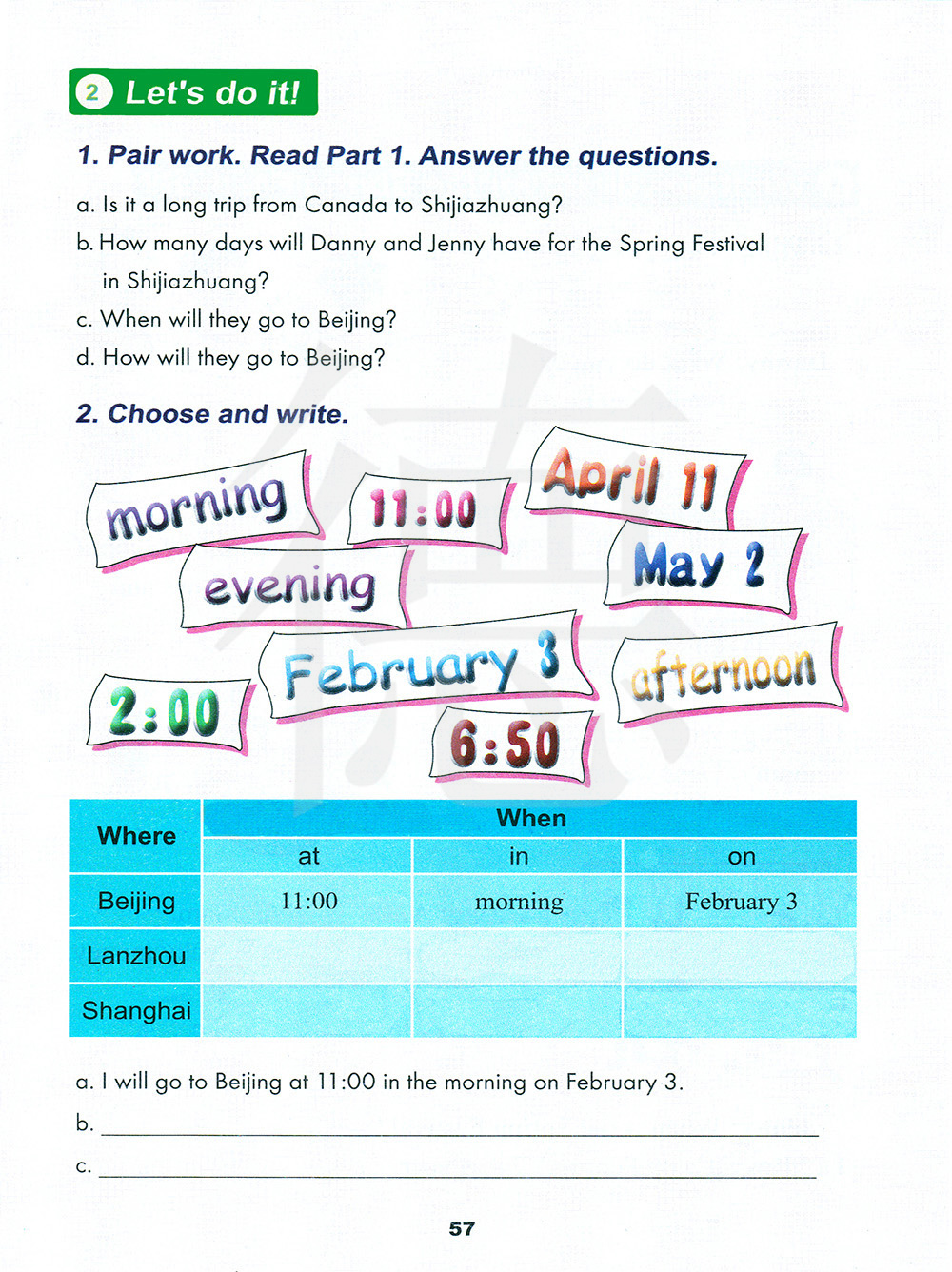 1 结对练习。阅读第1部分。回答问题。