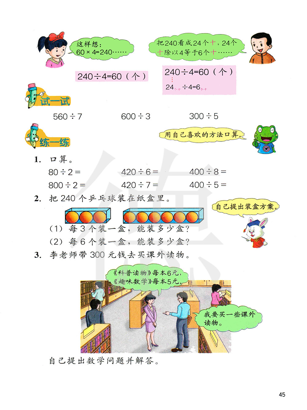 240÷6,把240看作24个十,把24个十平均分成6份,每份是4个十,就是40。