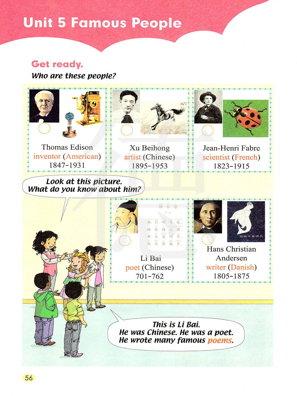 3. 本课设计的著名人物是指那些为人类社会进步做出巨大贡献的人。注意与 popular 的区别。