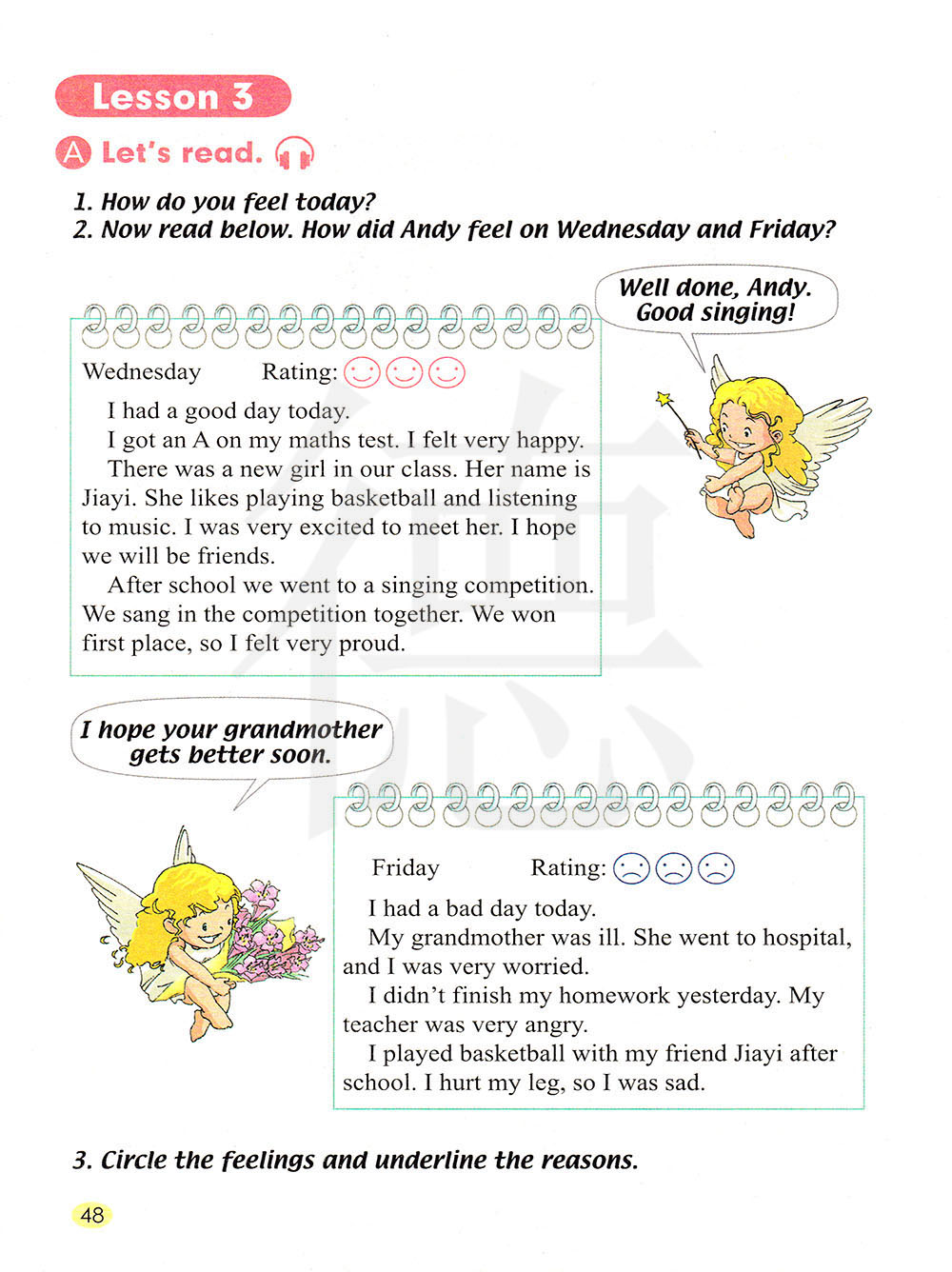 现在读一读下面的段落。星期三和星期五,安迪觉得怎么样?
