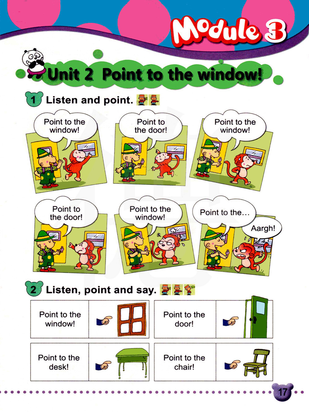 2. 语言技能目标:全体学生能听懂“Point to…”并做出相应动作。