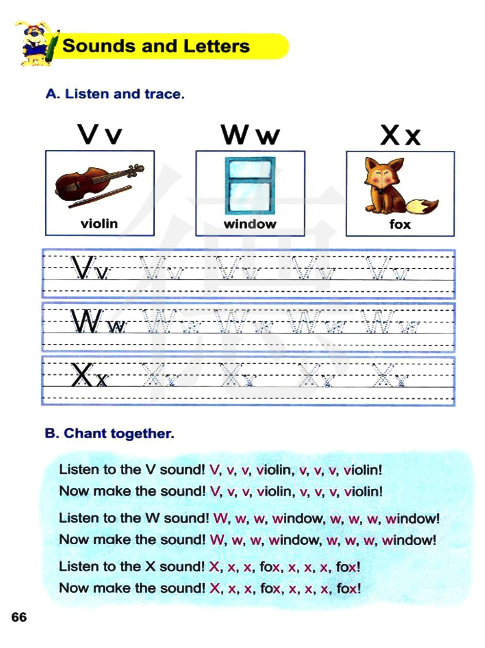 听V的音!V,v,v,小提琴,v,v,v、小提琴! 现在我们来发V的声音!V,v,v,小提琴,V,v,v,小提琴! 听W的声音!W,w,w,窗户,W,w,w,窗户!现在我们来发W的声音!W,w,w,窗户,W,w,w,窗户! 听X的声音!X,x,x,狐狸,x,x,x,狐狸!现在我们来发X的声音!X,x,x,狐狸,x,x,x,狐狸!