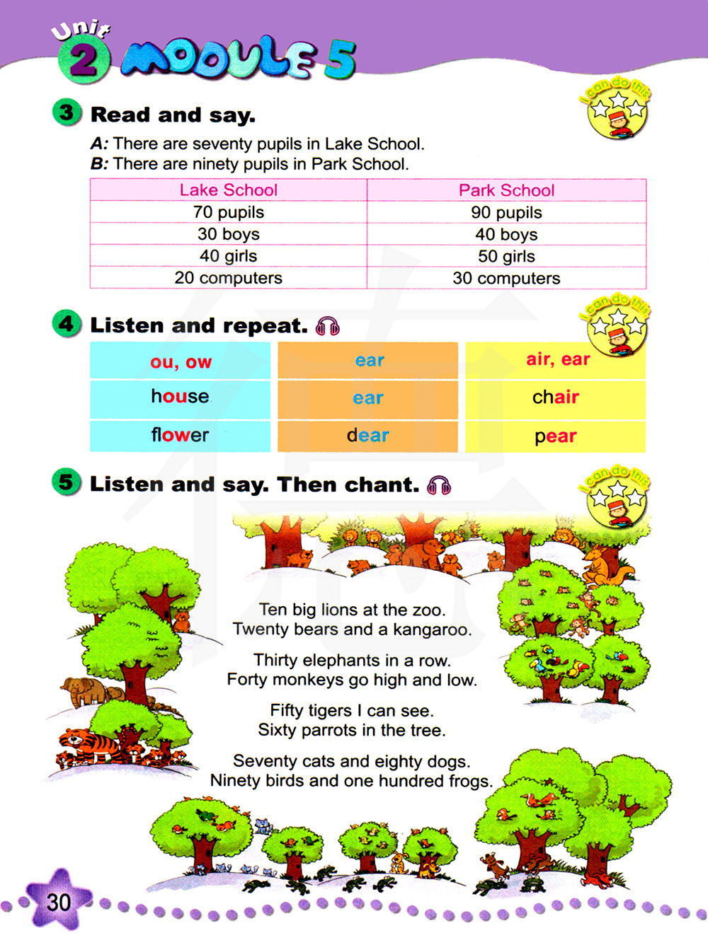 有七十个小学生在湖泊学校。 有九十个小学生在公园学校。