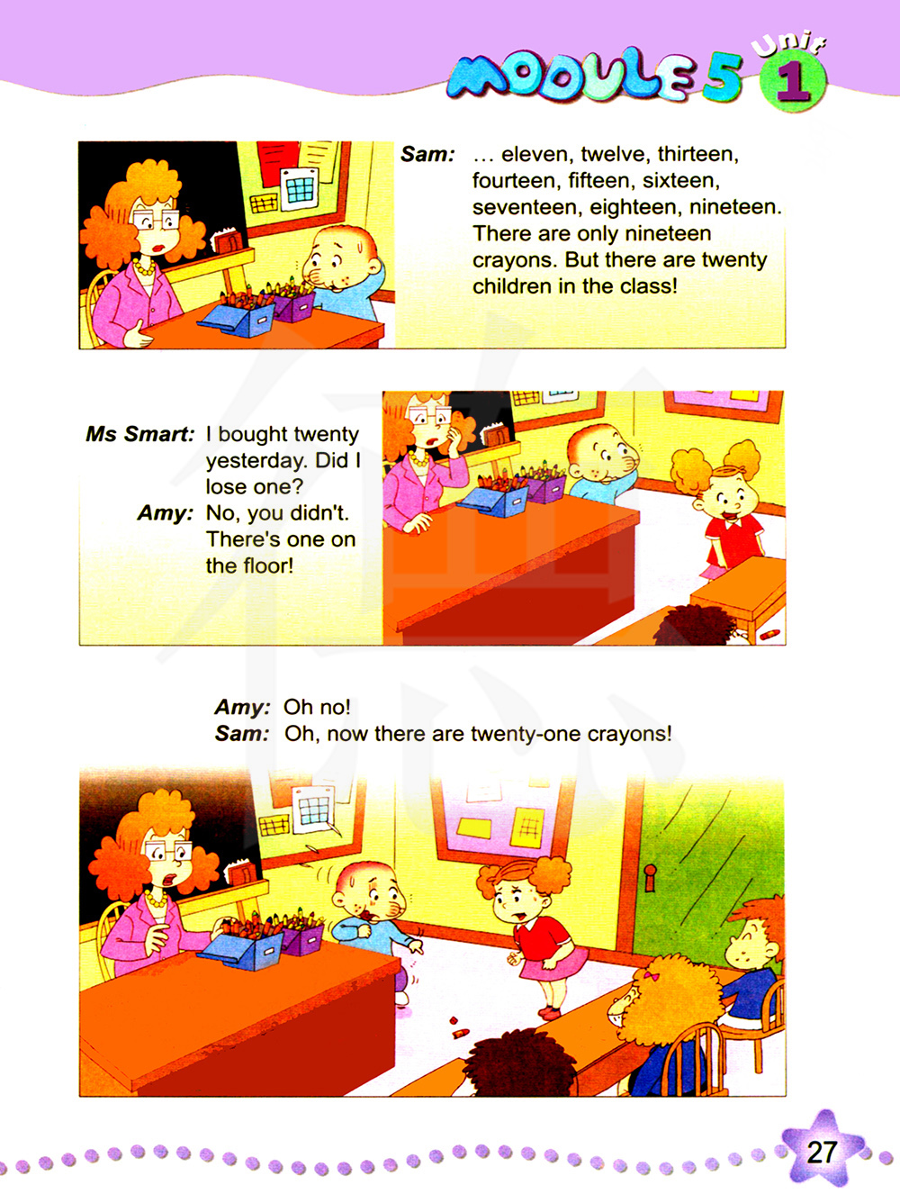 十一,十二,十三,十四,十五,十六,十七,十八,十九。 只有十九支蜡笔,但是班上有二十个同学!