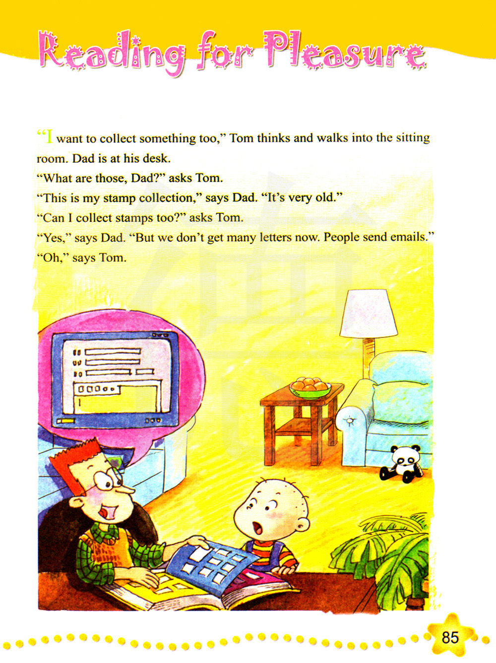 “这是我的邮票收藏,”爸爸说。“它很古老。” “我也可以集邮吗?”汤姆问道。