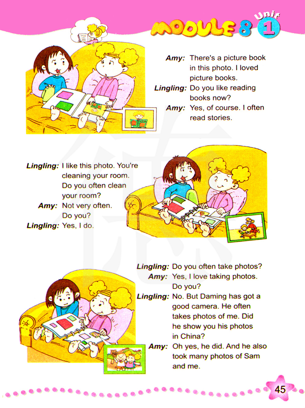 你现在喜欢看书吗? 是的,当然。我经常读故事。