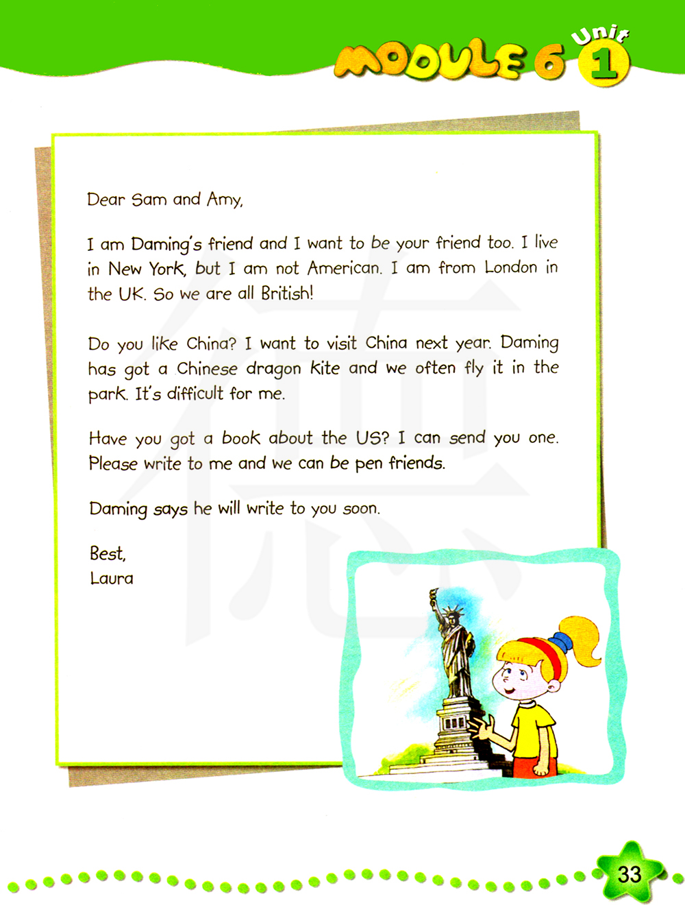 你们有一本关于美国的书吗?我可以给你们寄一本。 请写信给我,我们就可以做笔友了。
