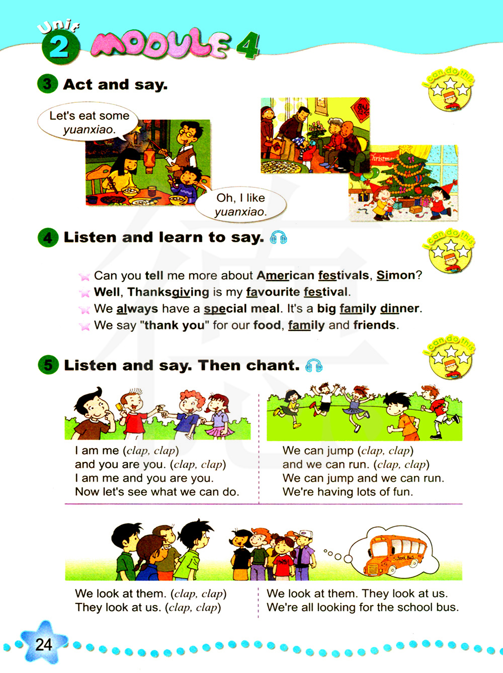 我们可以跳(拍手,拍手),我们可以跑。(拍手,拍手) 我们可以跳我们可以跑。 我们很快乐。