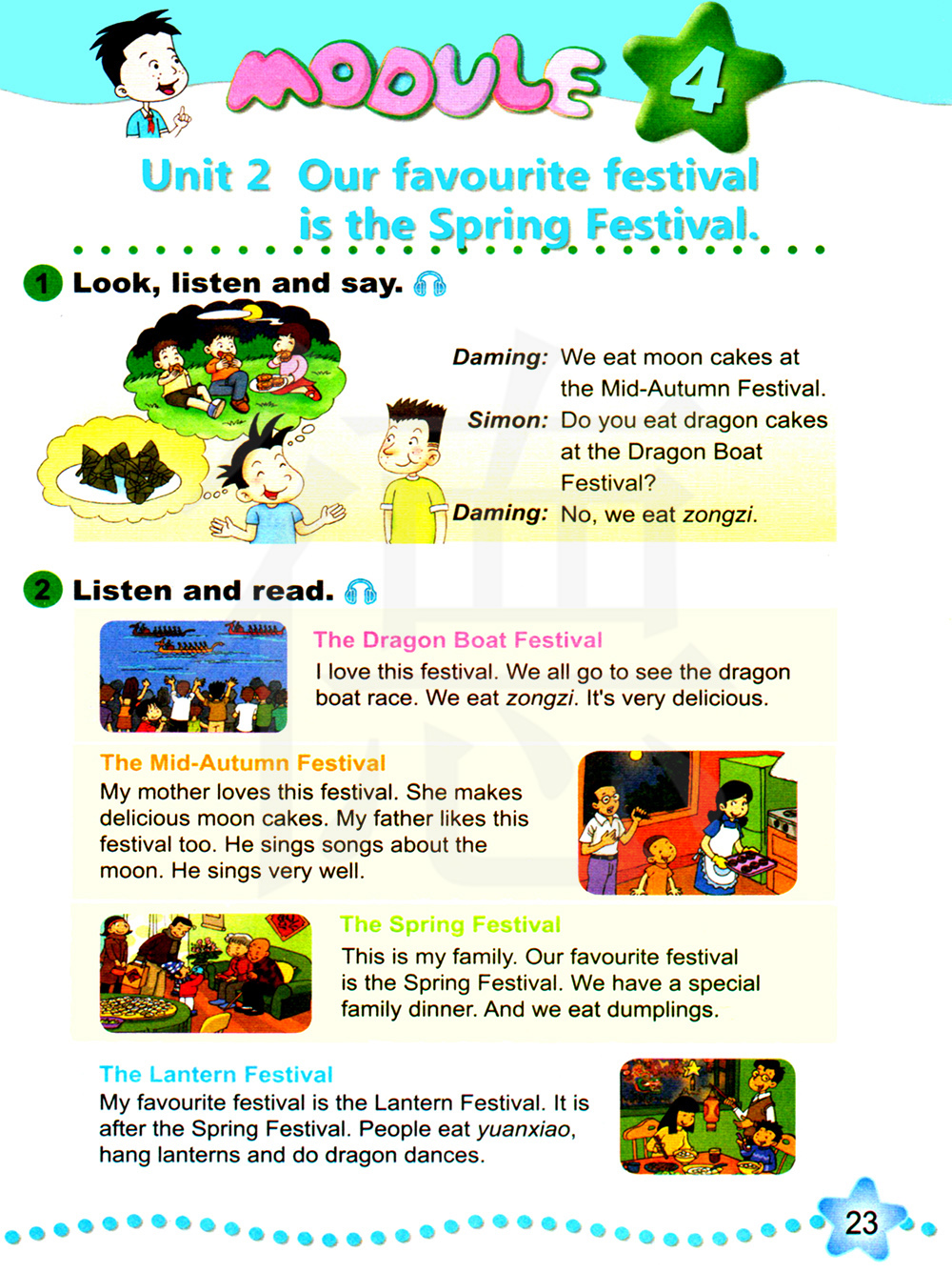 情感、态度和价值观:介绍中国主要节日。比较中西方节日的差异。 交流自己对节日的喜好。