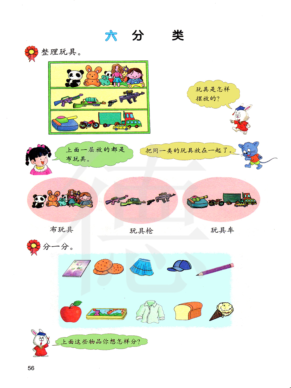 ①按(颜色,板书)来分 分成(三类)说明分类不仅可以分成两类,还可以分成三类,甚至更多类。