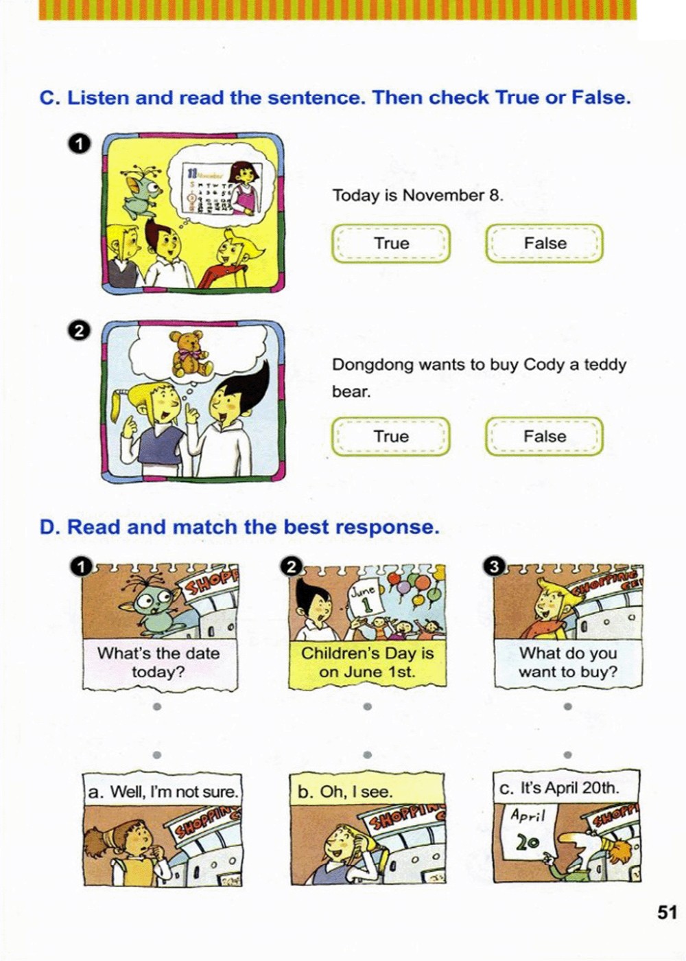 C.听录音并读下列句子,然后在“true”或“false”上打勾。