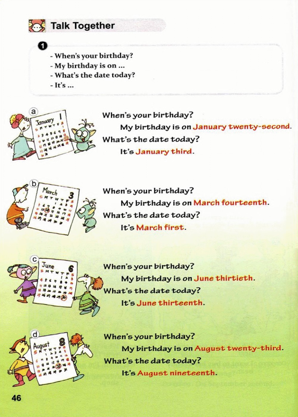 你生日是什么时候? 我生日是… 今天是几号? 是…
