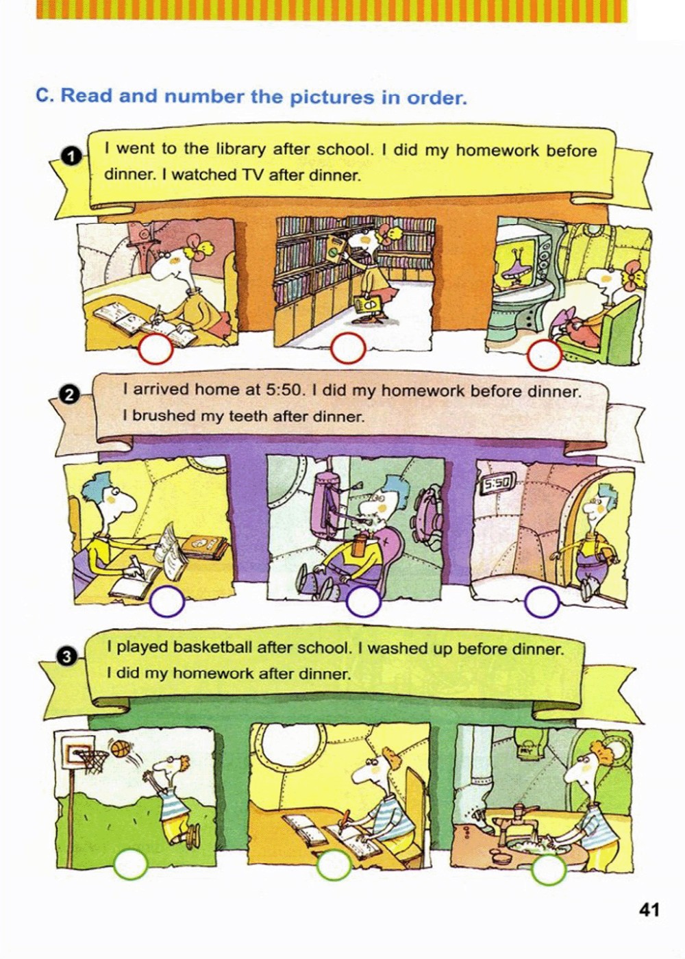 放学后我去了图书馆。晚餐前我做了家庭作业。晚餐后我看了电视。