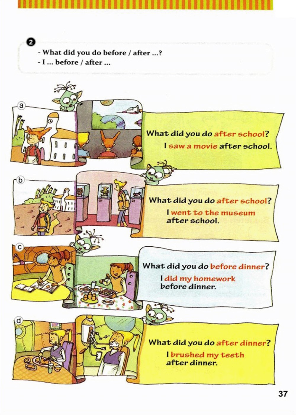 放学后你做了什么? 放学后我去了博物馆。