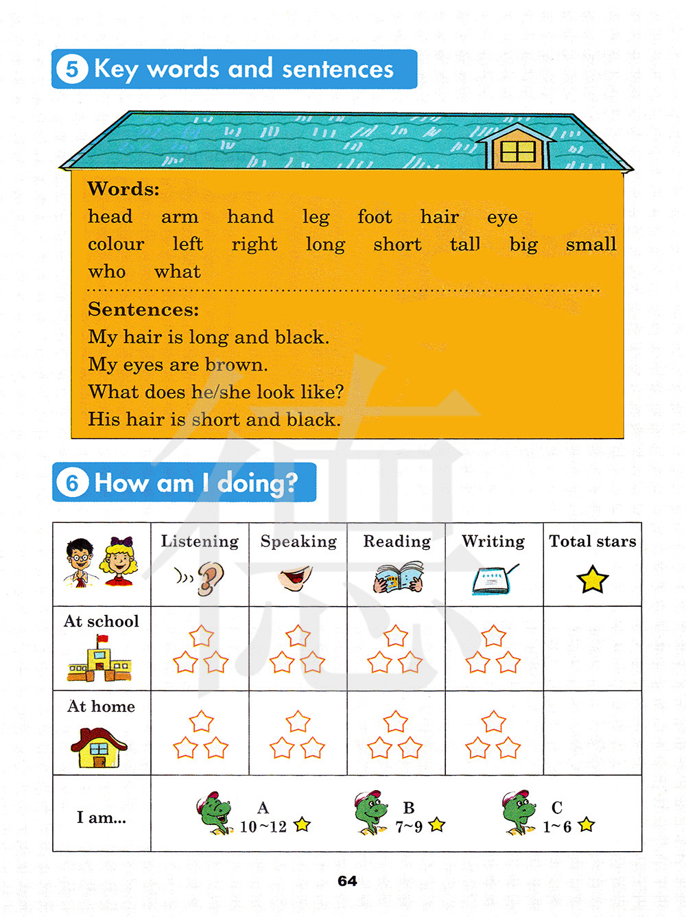 单词 头 手臂 手 腿 脚 头发 眼睛 颜色 左边 右边 长的 短的 高的 大的 小的 谁 什么