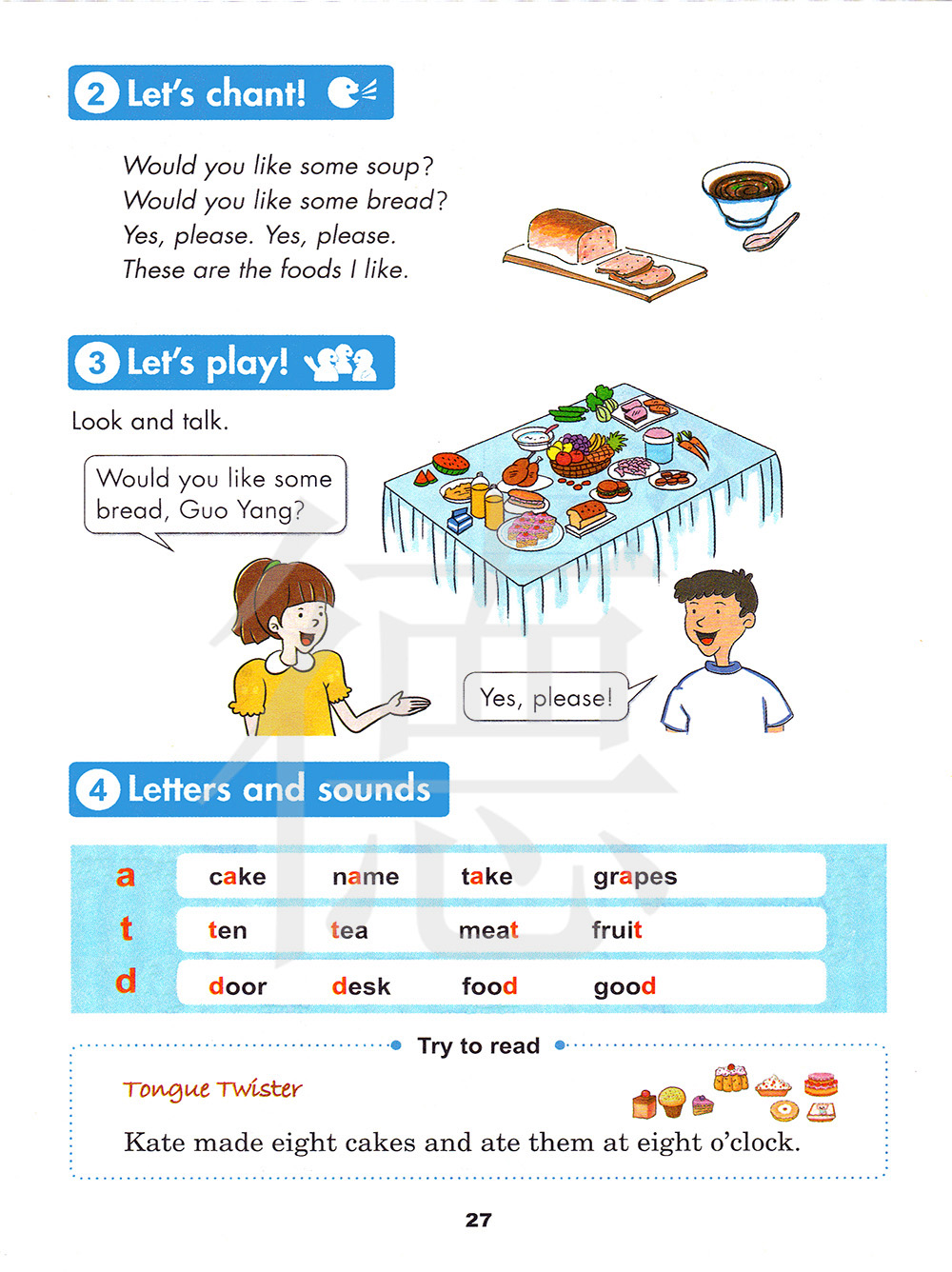 你想要喝一些汤吗? 你想要一些面包吗? 是的,是的, 这些是我喜欢的食物。